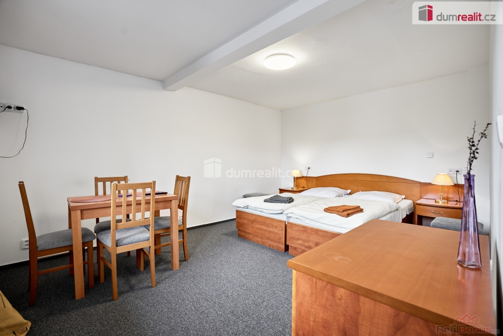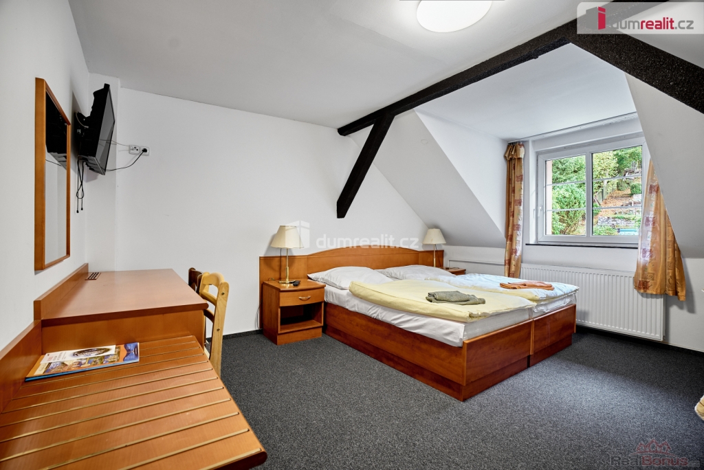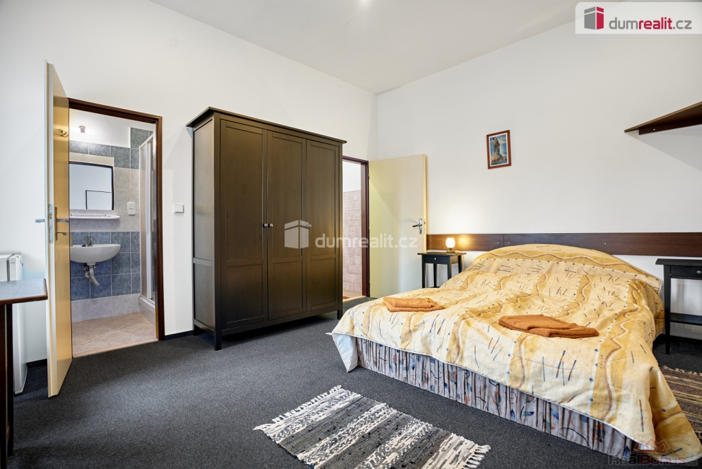 cena je vč. právního servisu a provize RK, Dumrealit.cz Vám zprostředkuje prodej zavedeného penzionu v krušnohorské obci Nejdek. Dům byl v roce 1997 kompletně zrekonstruován, je napojen na všechny inženýrské sítě a vytápěn je plynovým kotlem. V přízemí jsou dva samostatné pokoje se sociálním zařízením a jeden s kuchyňkou, dále garáž, prádelna a vstup do sklepa, kde je umístěn plynový kotel se zásobníkem. V 1. patře domu jsou 3 samostatné dvoulůžkové pokoje s příslušenstvím. Ve 2. patře je byt 2+1 (4 lůžka), který byl vybudován před 5 lety. V tomto patře je i vstup na půdu, která je využívána jako odkládací prostor. Za domem je terasovitá zahrada s možností vstupu do lesa na Křížovou cestu. Veškerá potřebná občanská vybavenost je v obci snadno dostupná. V blízkém okolí je řada lyžařských a sportovních středisek, turistické, běžecké a cyklistické trasy. Tuto nemovitost lze hradit úvěrem, který Vám rádi pomůžeme vyřídit v našem finančním centru. Vzhledem k tomu, že před zadáním do inzerce nebyl vyhotoven PENB, je tento byt v souladu s platným zákonem zařazen do energetické třídy G. Ev. číslo: 648655. Energetický štítek: G