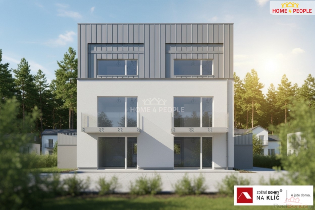 (Cena včetně výstavby bytu, kolaudace, pozemku, terasy, parkování a zahrady.)