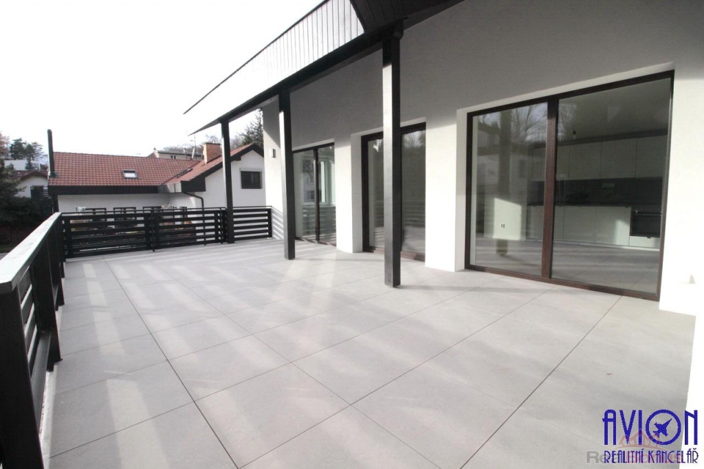Prodej nově vybudovaného moderního bytu s dispozicí 5+kk, podlahovou plochou 135 m2, s velkou slunnou terasou 31 m2, garážovým a venkovním parkovacím stáním na unikátním místě na konci slepé ulice v sousedství lesa. Byt se nachází v 1. patře energeticky úsporného domu se šesti bytovými jednotkami v ulici 5. máje, Praha 5 - Stodůlky (rozhraní Motol/Stodůlky), s dobrou dostupností.