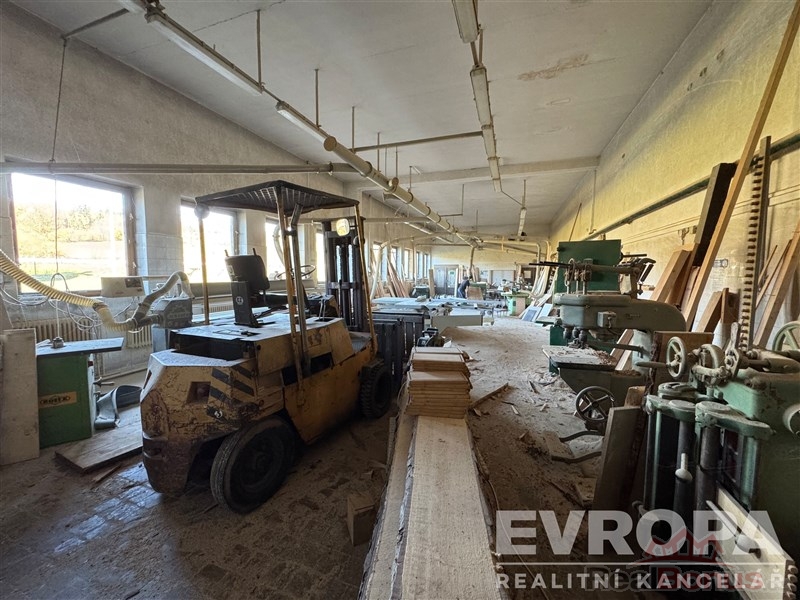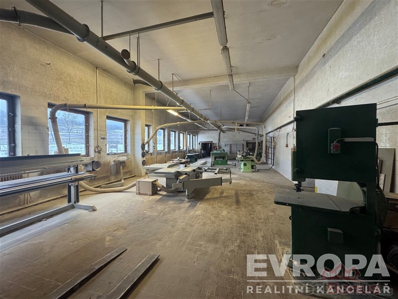 Výrobní haly a prostory jsou plně vybavené a připravené k okamžitému využití po dohodě je možné odkoupit i vybavení truhlárny, která zde 25 let fungovala