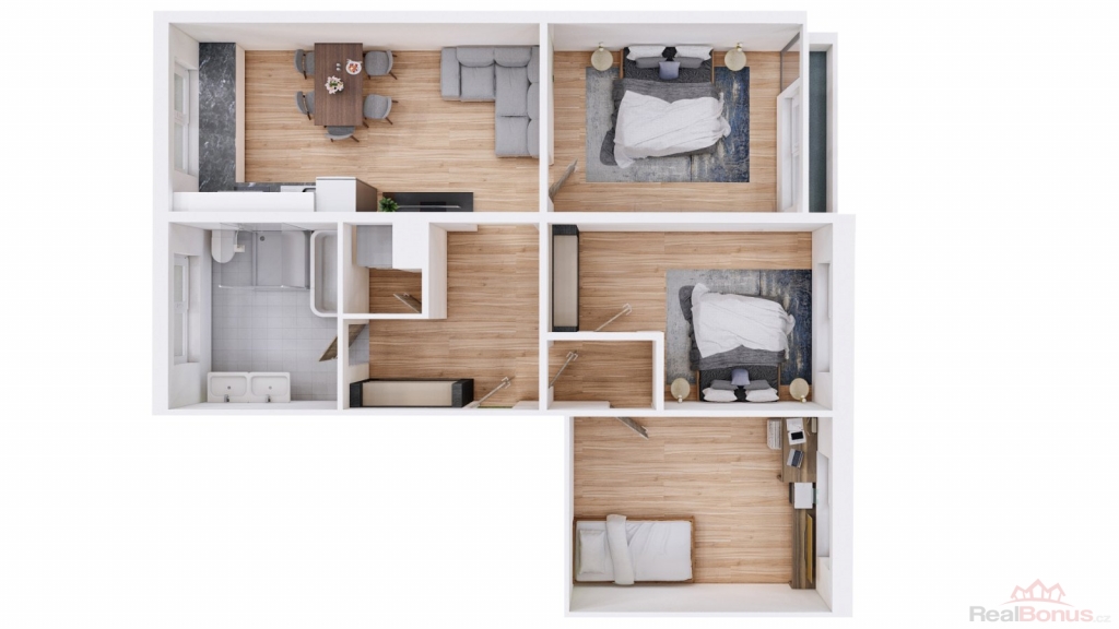 Nabízíme k prodeji velký byt s dispozicí 4kk v 5. nadzemním podlaží revitalizovaného panelového domu s výtahem na Klíši. V domě jsou pouze dva byty na patře. Byt má 2 samostatné neprůchozí ložnice kuchyň a obývací pokoj, chodbu, lodžii, samostatnou koupelnu s vanou, toaletou a přípravou pro sprchový kout. K bytu náleží sklep o velikosti cca 2 m2. Dům je vytápěn dálkovým teplovodem a má velmi nízké náklady na vytápění. Byt je po celkové rekonstrukci (nové rozvody vody, elektřiny, byt. kanalizace, SDK podhled a výměna oken za plastové, kuchyňská linka, podlahy, nová koupelna) a aktuálně je pronajatý na dobu určitou do konce srpna 2025. Ve společných prostorách domu je k dispozici kočárkárna. Parkování je možné před domem na soukromém pozemku, kde můžou parkovat pouze vlastníci jednotek v domě. Zastávka MHD je od domu vzdálena cca půl minuty chůze. V okolí domu je mateřská škola, plavecký bazén, sportovní centrum Sluneta, základní školy, střední školy, univerzita UJEP, Kaufland, příroda na Střížovickém vrchu, vše vzdáleno pár minut chůze. Dálnice D8 Praha/Drážďany je vzdálena cca 5 minut jízdy autem. Byt je aktuálně pronajatý na dobu určitou do konce srpna 2025. V přílohách najdete vizualizace úprav, které navrhl projektant.