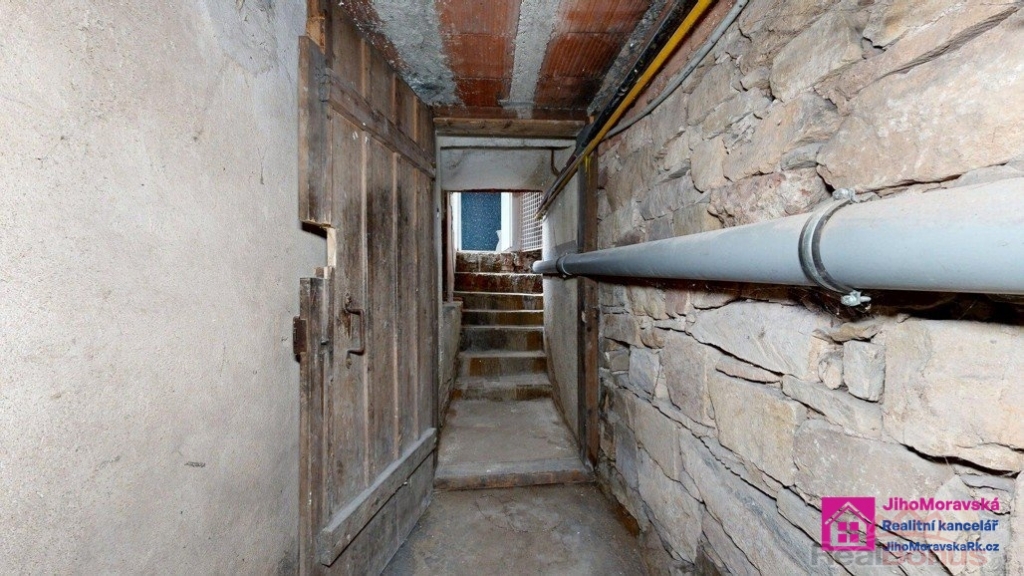Dispozice domu:suterén: chodba se schodištěm a tři skladovací prostory,1 NP: koupelna, chodba, toaleta, chodba, pokoj s kuch. koutem a pokoj2. NP: schodiště, toaleta, pokoj s kuch. koutem a terasa.