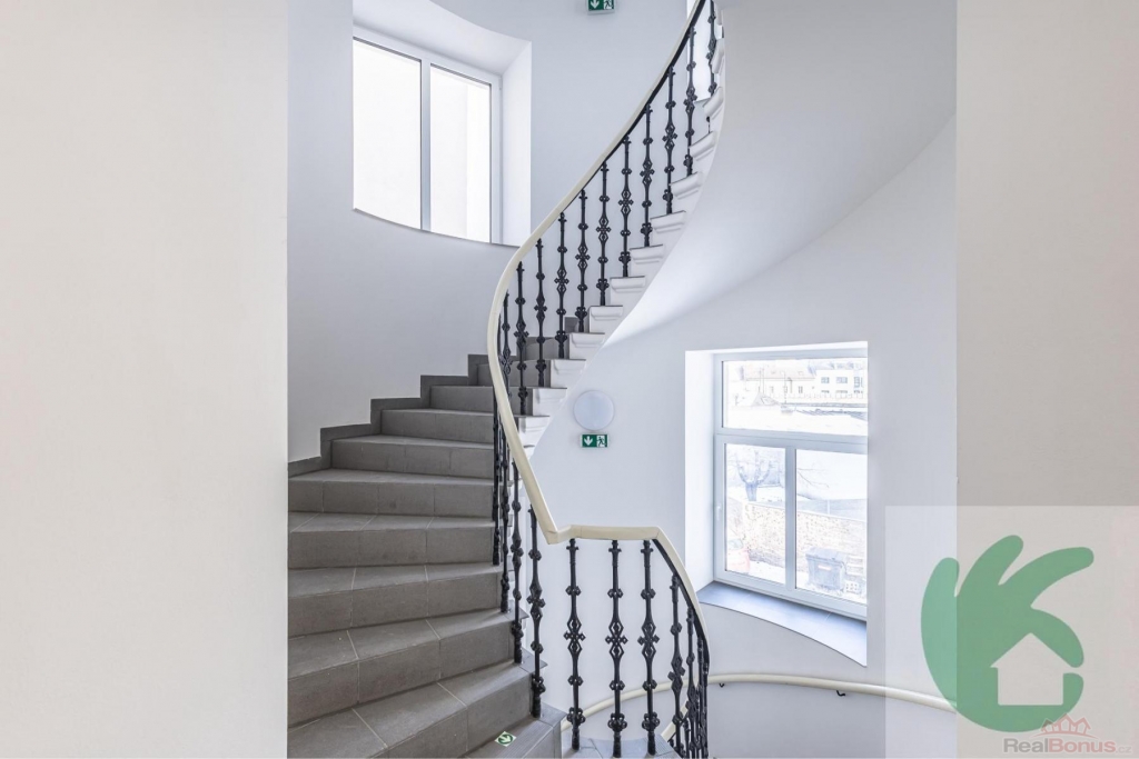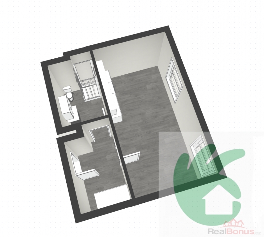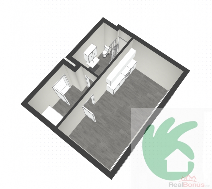 Byt je tvořen prostornou vstupní chodbou, kde se nachází skříň na uložení věcí. Dále z chodby vstoupíme do moderní koupelny, která disponuje prostorným sprchovým koutem umyvadlem a závěsnou skříňkou se zrcadlem a toaletou žebříkovým topením pro vyhřátí místnosti. Z chodby vstoupíme do pokoje, kde se nachází kuchyňská linka, která je vybavená s vestavnými spotřebiči (elektrickou troubou, varnou deskou, digestoří, mikrovlnou troubou). K bytu náleží komora, která je umístěna na stejném patře, jako byt. Rekuperace v celém bytě (řízené větrání s rekuperací tepla a čerstvým vzduchem do všech prostor, což zvyšuje komfort).