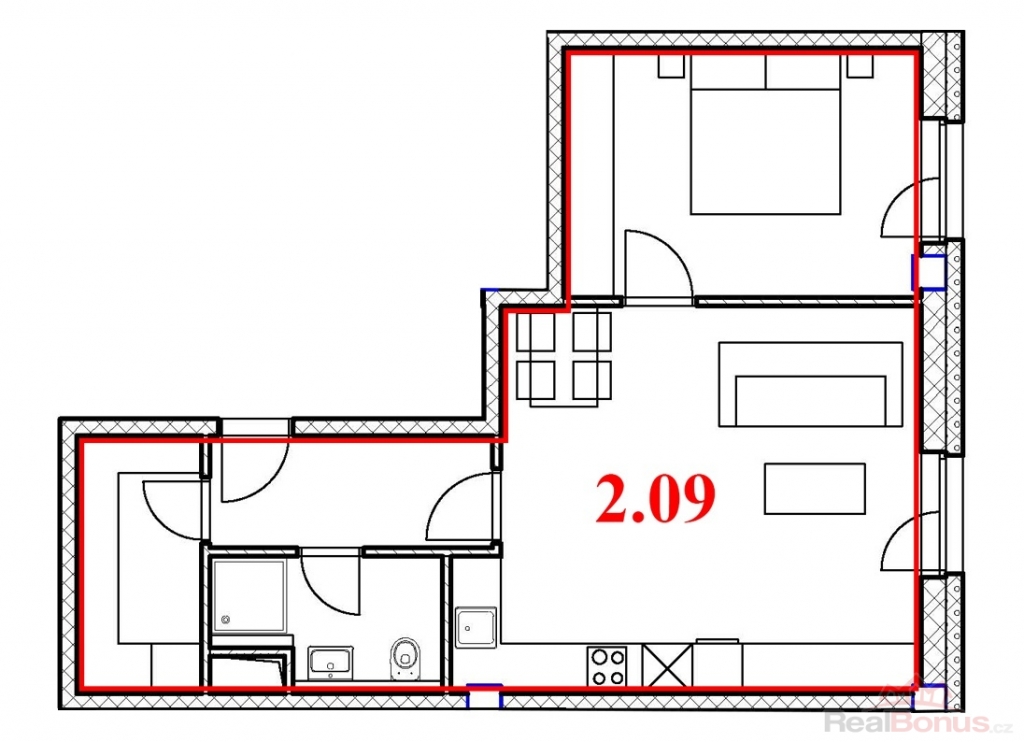 | Dispozice bytu | 2+kk |