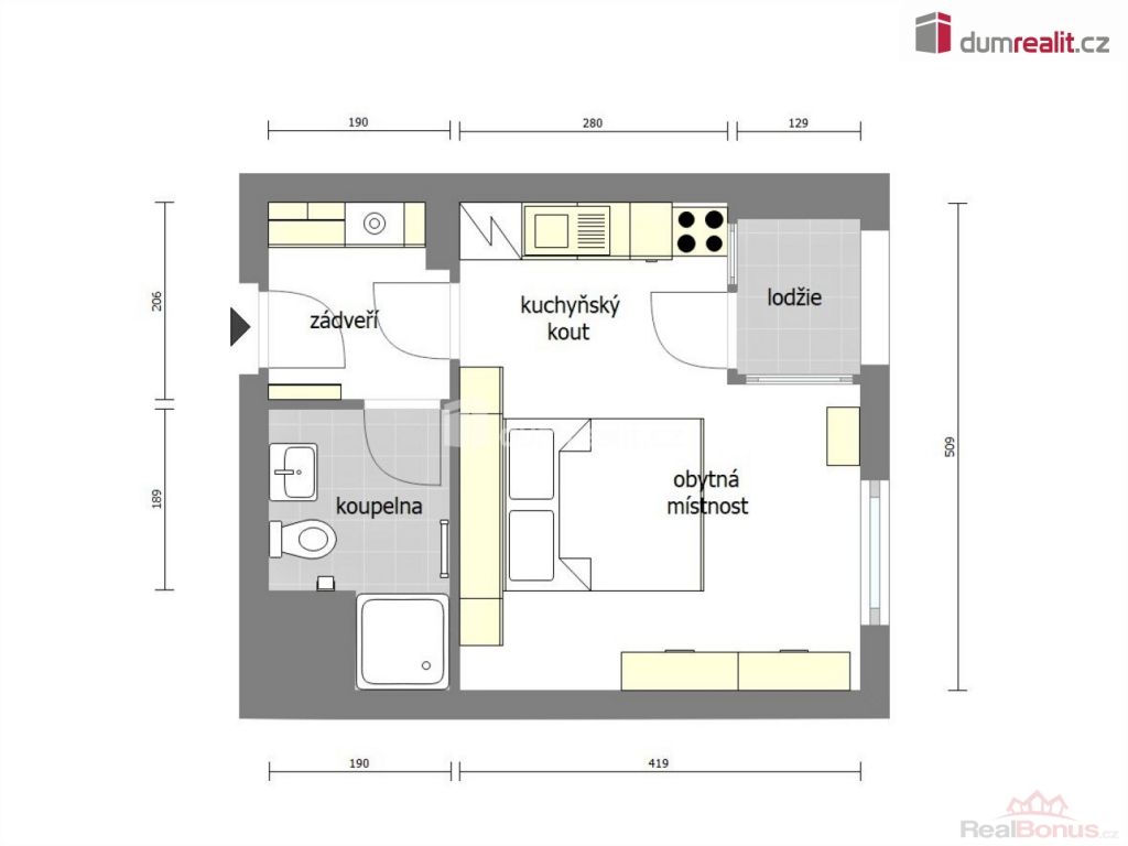 | Dispozice bytu | 1+kk |