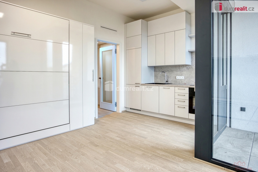 +popl. 3562, , Dumrealit.cz Vám zprostředkuje pronájem bytu o dispozici 1+kk, podlahové ploše 29m v novostavbě bytového domu rezidence Lihovar. Jedná se o novou rezidenční čtvrť na levém břehu Vltavy. Nabízí bydlení v unikátní atmosféře, která každý den ožívá kulturními i gurmánskými zážitky pod širým nebem, jen pár kroků od zeleně Císařské louky, Podolí nebo nedalekých Dívčích hradů. Interiér velmi světlého bytu tvoří obývací pokoj s plně vybavenou kuchyní (zcela nová kuchyňská linka se zabudovanou el.troubou Elektrolux, indukční varnou deskou, myčkou nádobí, lednicí, odpadkovým košem), proskleným přístupem na lodžii, koupelna se sprchovým koutem a toaletou, a vstupní chodba s vestavěnými skříněmi se zabudovanou pračkou. Obytná místnost je vybavena skříněmi s praktickou, výklopnou manželskou postelí. S užíváním jednotky je spojeno právo využití komory (sklepa) umístěného ve II.PP domu o velikosti 2,40m. Samozřejmostí je inteligentní ovládání domácnosti v aplikaci, bezpečnostní rolety, rekuperace, centrální podlahové vytápění, videotelefon, aktivní internetové připojení, kamerový systém a výtah. K dispozici nájemcům je také recepce, dále bistro umístěné u domu a uzavřené hrací hřiště. Uprostřed rezidence se nachází parkové sezení, komerční prostory a myčka kol. Na střeše domu je zelená zahrada s relaxačními zónami s výhledem na Vyšehrad.