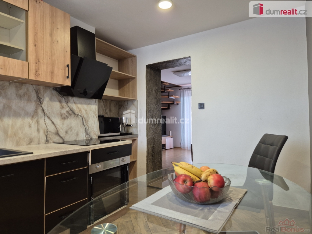 Mezonet. Cena včetně právního servisu a provize RK., Hledáte nadstandardní bydlení v Kaplici? Prohlédněte si tuto nabídku mezonetového bytu o celkem 160 m (60/100), s balkonem a dvěma koupelnami, ve třetím nadzemním podlaží, plus vestavěném podkroví, v třípodlažním zděném domě bez výtahu, ul. Omlenická, Kaplice.