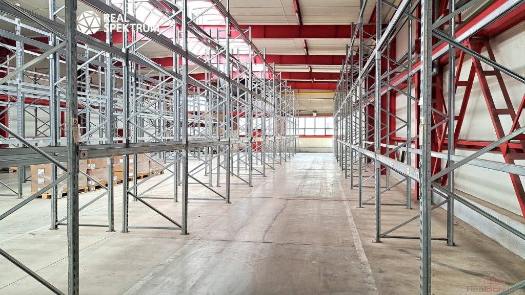 užitná plocha 2.271 m2, výška 5,4 m, skladová hala , regálový systém pro cca 2000 paletových míst; 3x vrata (2x přístup přes vyrovnávací můstek na kamion, 1x přístup přes rampu); cena 1.435 Kč/ m2/rok + energie