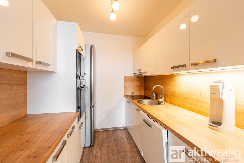 Nabízím k prodeji kompletně rekonstruovaný byt v osobním vlastnictví o dispozici 2+kk s lodžií, nacházející se v 7. patře zatepleného panelového domu s výtahem.
