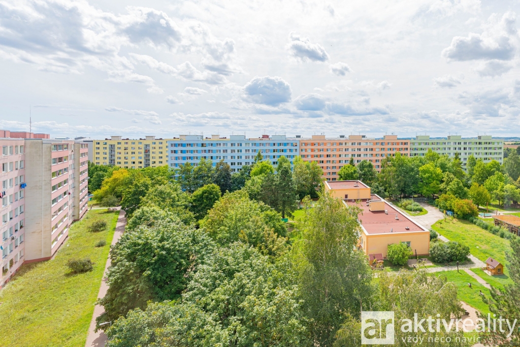 Obytná plocha bytu činí 40 m2 a je prakticky řešena ? vstupní chodba, ložnice, obývací pokoj s kuchyňským koutem, koupelna se sprchovým koutem a samostatná toaleta. K bytu dále náleží zasklená lodžie o velikosti 7 m2, komora a sklepní kóje.