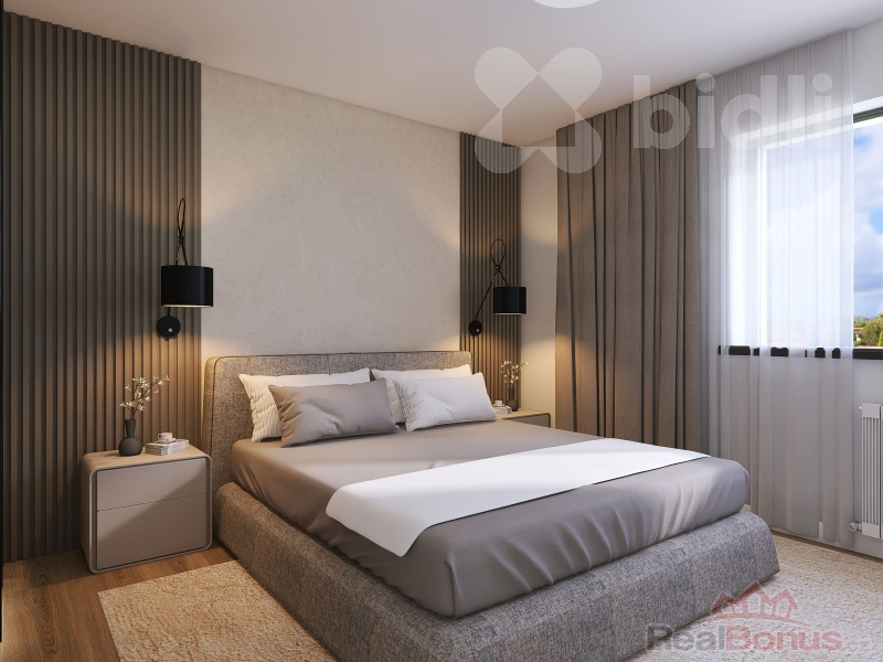 Novostavba nízkoenergetického zděného mezonetového bytu o dispozici 3+kk a podlahové ploše 85,5 m2, který je součástí trojdomu - tedy domu se třemi samostatnými jednotkami. Svým uspořádáním připomíná spíše řadový rodinný dům, ideální pro moderní a úsporné bydlení. V přízemí se nachází prostorný obývací pokoj s kuchyňským koutem, koupelna a zádveří. V patře pak najdete ložnici, další pokoj, druhou koupelnu a chodbu. K bytu náleží také snadno udržovatelná zahrada o rozloze 48 m2, která nabízí prostor pro relaxaci i volnočasové aktivity. Ke každé bytové jednotce náleží 1 parkovací stání.