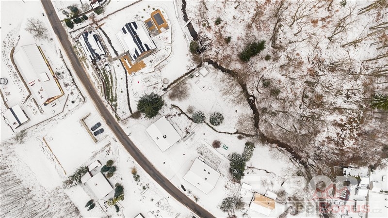Chalupa, zkolaudovaná v roce 2016 prvními a jedinými majiteli, stojí na rovině a je zde vytvořený a připravený prostor na stavbu vodního díla. Část zahrady za chalupou je ve svahu a na hranici zbylé rovinaté části zahrady protéká potok s mírným dnem.
