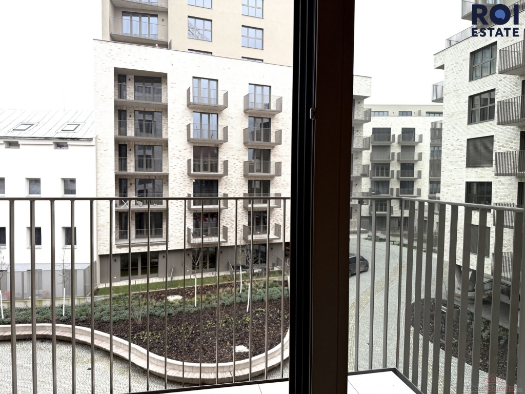Balkon je prostorný s příjemným výhledem do vnitrobloku projektu. Ideální místo pro večerní relax.