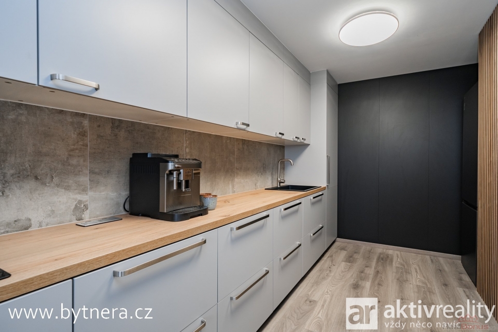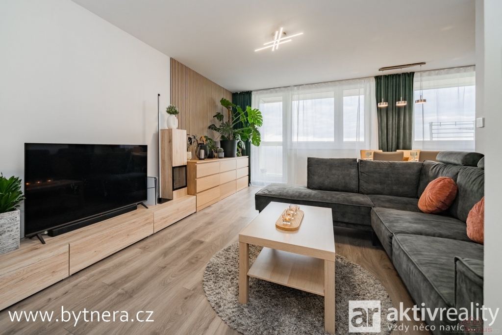 Byt prošel kompletní rekonstrukcí ? elektřina je v mědi, byt má zděné jádro, snížené sádrokartonové stropní podhledy a akustické panely, které zvyšují komfort bydlení a útulnost interiéru. Osvětlení je moderně řešeno s možností ovládání přes mobilní aplikaci. V bytě také byly použity akustické panely, které celému prostoru dodávají útulnost.