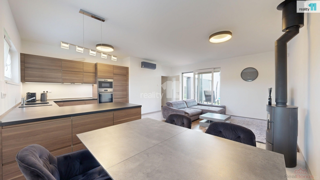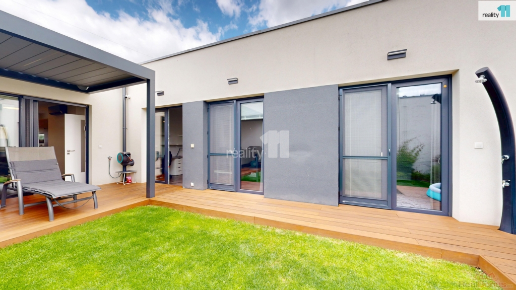 + spotřeba elektřina, vodné a stočné, Nabízíme vám k pronájmu rodinný dům 5+kk ve velmi zajímavé lokalitě Hostavice, Jahodnice, ulice Manželů Dostálových, Praha 14. Jedná se o jednopodlažní řadový rodinný dům, který byl postaven v roce 2020 a do této doby užíván jedním vlastníkem. Dispoziční členění je následující: vstupní chodba, chodba, komora I. (technická místnost - pračka, sušička), komora II. (využíván jako sklad), pokoj I. (pro hosty), pokoj II. (dětský pokoj), pokoj III. (dětský pokoj), pokoj IV. (ložnice) , koupelna I. (vana, WC, umyvadlo), koupelna II. (sprchový kout, umyvadlo, WC), prostorný obývací pokoj s kuchyňským koutem, terasa (bioklimatická pergola), uzavřená zahrada, předzahrádka (zahradní domek), parkovací stání u domu. celková podlahová plocha domu je 136m, uzavřená zahrada má výměru 63m a předzahrádka 56m, celková plocha pozemku včetně zastavěné plocha je 313m. Vytápění domu je zajištěno podlahovým elektrickým topením, dále se v obývacím pokoji nachází krbová kamna, která v zimních měsících zajistí pohodové vytápění. V obývacím pokoji je také klimatizace, která zase v letních měsících pomůže s ochlazením. Na předzahrádce se nachází zahradní domek, který je využíván na uskladnění zahradního nářadí. Přímo u domu se nachází parkovací stání. Máme pro vás k dispozici 3Dvirtuální prohlídku od společnosti 3Dvirtualcz, kde si dům můžete projít z pohodlí svého domova a zvážit následně zájem o osobní prohlídku, odkaz a půdorys Vám zašleme na vyžádání. Při podpisu Smlouvy o nájmu požadujeme tyto platby, 1x nájemné na měsíc dopředu, kauci a odměnu realitní kanceláře ve výši jednoho nájmu. Odběr elektřiny se přepisuje na nájemníka. V případě zájmu o další informace, případně o osobní prohlídku, kontaktujte makléře společnosti. Ev. číslo: 27565. Energetický štítek: C (150 kWh/m2/rok).
