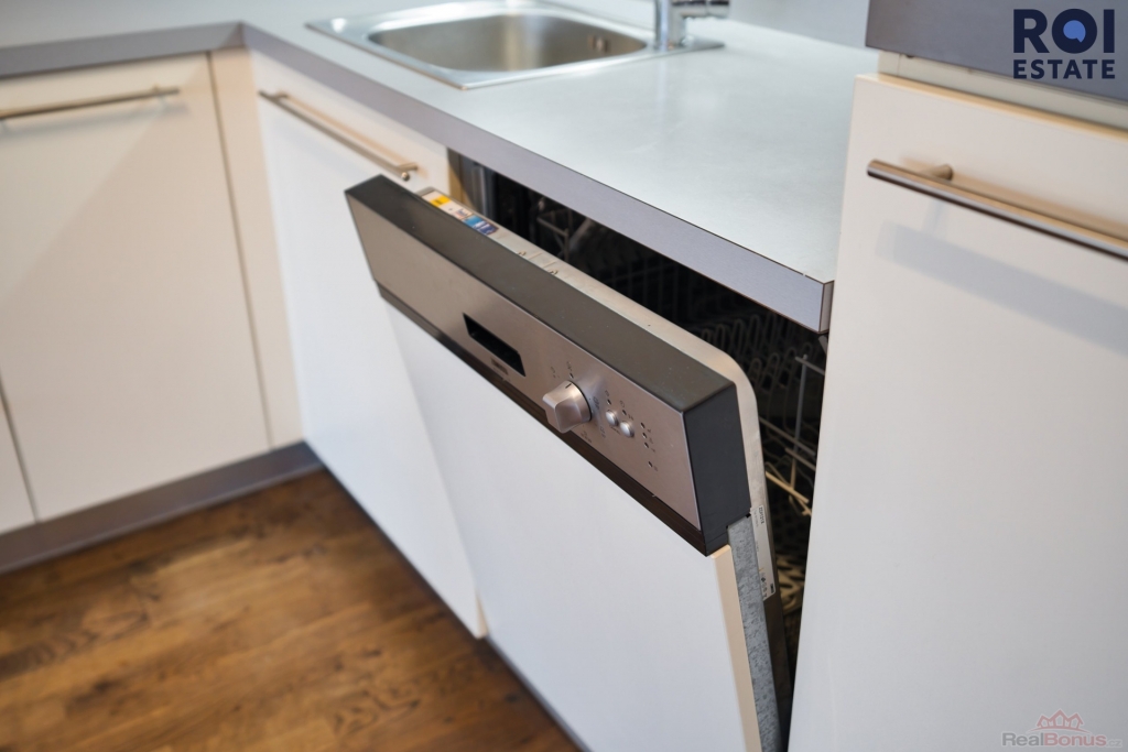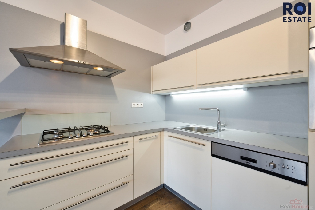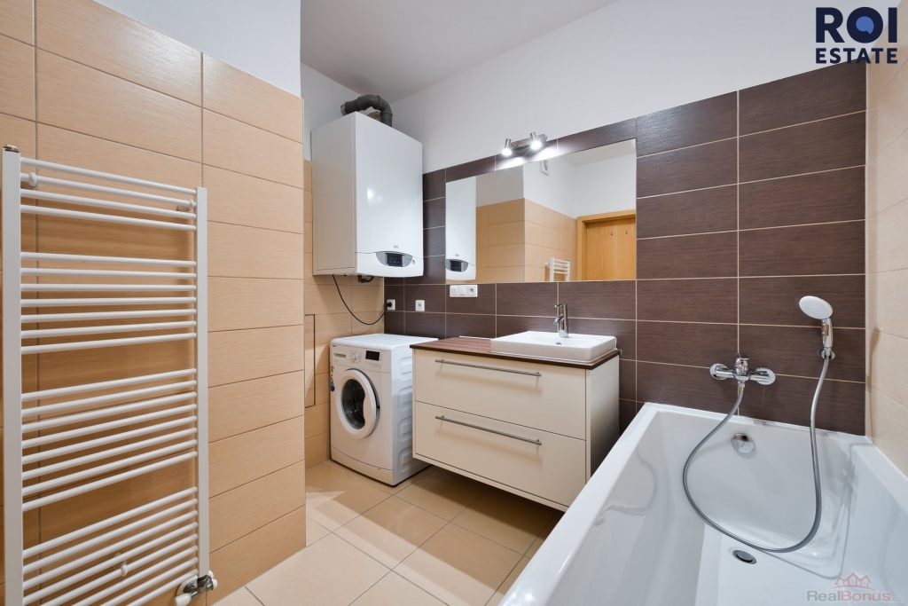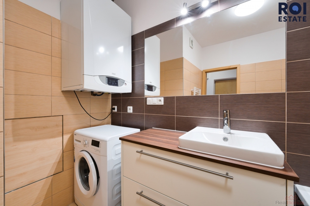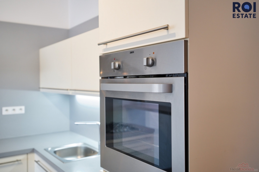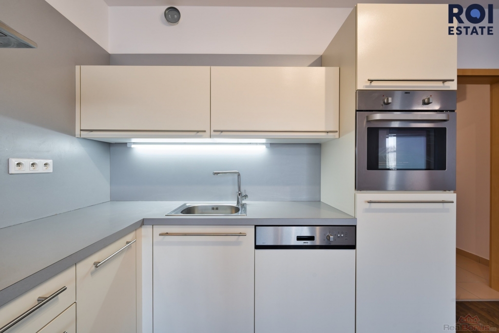 Dominantou bytu je velký obývací pokoj s kuchyňským koutem. Otevřený, světlý prostor, který dává volnost v uspořádání nábytku. Kuchyňská linka je vybavena myčkou, plynovou varnou deskou, elektrickou troubou a lednicí, takže máte funkční základ a zbytek už je jen o stylu. Stačí jídelní stůl, pár židlí, pohovka a byt začne žít.