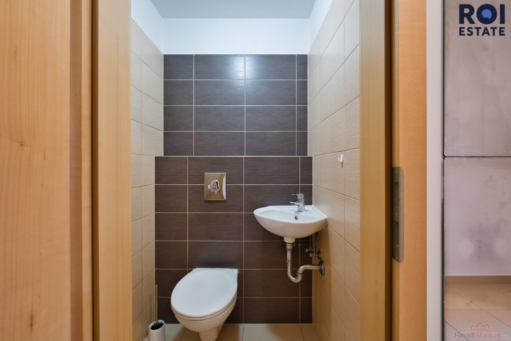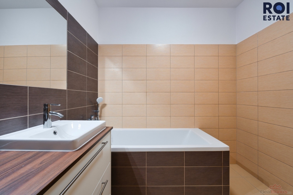 Koupelna je vybavena vanou, ideální pro relax po dni v práci, a toaleta je oddělená.