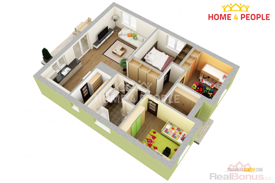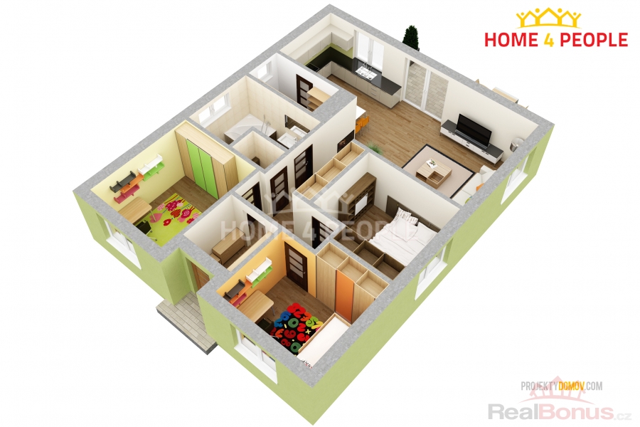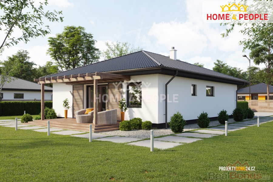 Cena včetně domu na klíč, sítí, přístupové komunikace, pozemku a DPH., Zprostředkujeme Vám výstavbu domu na klíč typ Eko104 4+kk, 125 m na pozemku (č. 21) o velikosti 1129m v Bořenovicích okr. Kroměříž. Bungalov Eko104 je typ rodinného domu vhodný do rovinatého, ale i mírně svažitého terénu. Součásti uvedené ceny, která již zahrnuje DPH je dům na klíč, inženýrské sítě mimo plynu, příjezdová i obslužná komunikace, veřejné osvětlení, chodník, centrální čistička odpadních vod, pozemek a veškeré projektové práce a stavební povolení. Přípojná místa jsou vyvedena na pozemku. Pozemek (číslo 21) je mírně svažitý na klidném místě obce. Šíře pozemku je 21 m. Dle územního plánu je pozemek veden a schválen pro rodinné bydlení a projekt byl schválen zastupitelstvem obce. Zastavěná plocha domu je 125 m s užitnou plochou 104 m. Jedná se o zděnou stavbu a nabízí se ve variantě na klíč. Topení je řešeno nízkonákladovým teplovodním podlahovým topením, tepelné čerpadlo se zásobníkem na teplou vodu 180l. Možnost změnit na jiný typ vytápění s doplatkem dle výběru. Uvedená cena domu obsahuje základovou desku, DPH a stavba bude provedena na klíč a předána po kolaudaci k okamžitému užívání. (Součástí ceny není kuchyňská linka a světla dokážeme za zvýhodněných podmínek zajistit přes naše dodavatele). Možnost změny stavebního materiálu na dřevostavbu s doplatkem nebo přistavit garáž přímo spojenou s domem. Délka výstavby od vydání stavebního povolení, 12 měsíců u dřevostavby a 13 měsíců u zděné varianty. Možnost výstavby pouze hrubé stavby za 2.875.000,-Kč. Obec Bořenovice se nachází v okrese Kroměříž ve Zlínském kraji, zhruba 3,5 km od Holešova, 28 km od Kroměříže a 10 km k dálnici D55. Žije zde cca 210 obyvatel. Základní školu děti navštěvují v sousedním městě Holešov. V obci plné pokrytí signálu LTE, dostupný internet i satelitní vysílání. V obci je obchod se smíšeným zbožím, zajištěna autobusová doprava do Holešova. Omezený počet pozemků pro prodej v tomto roce. Doporučuji prohlídku a to jak samotného pozemku, tak našich rozestavěných domů v okolí. ZTV Bořenovice: https://www.home4people.cz/developerske-projekty/vystavba-domu-na-klic-borenovice-okr-kromeriz_7 Ev. číslo: 29318. Energetický štítek: A (37 kWh/m2/rok).