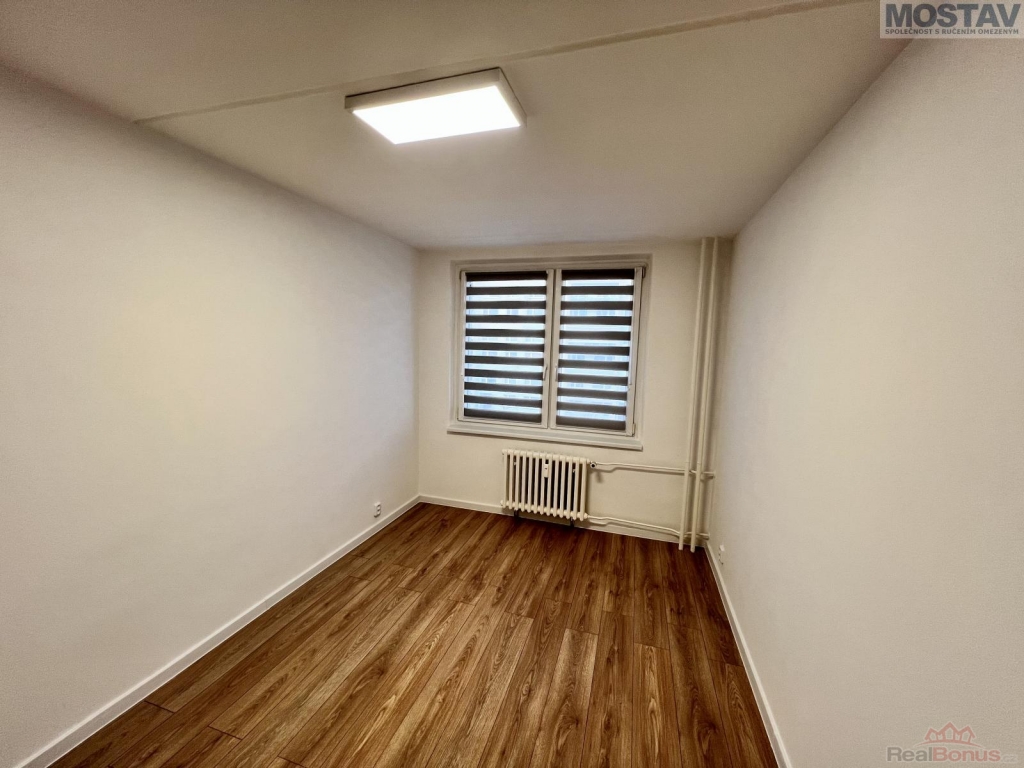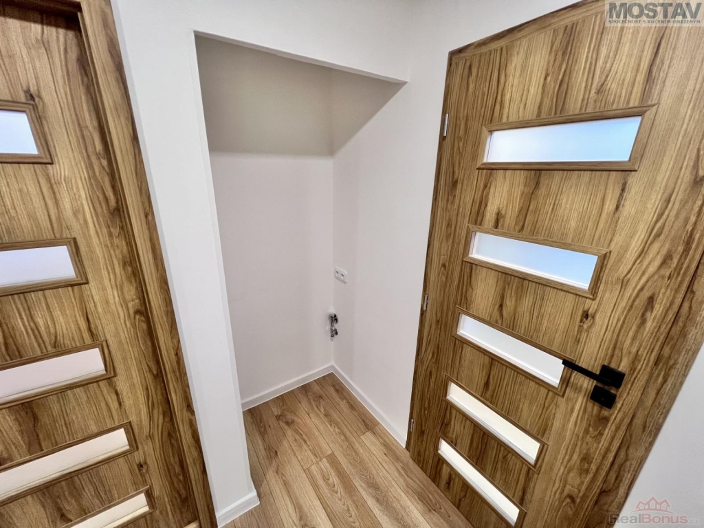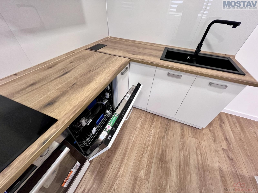 Byt prošel kompletní a kvalitní rekonstrukcí nové podlahy, štuky a výmalba, zděné bytové jádro, moderní koupelna se závěsným WC, snížené stropy v koupelně, předsíni, kuchyni i obývacím pokoji. Součástí je nová kuchyňská linka včetně vestavěných spotřebičů a myčky. Dále nové interiérové dveře s obložkami, kompletně nové rozvody elektřiny a odpadů, nové vypínače a zásuvky, žaluzie den, noc a další.