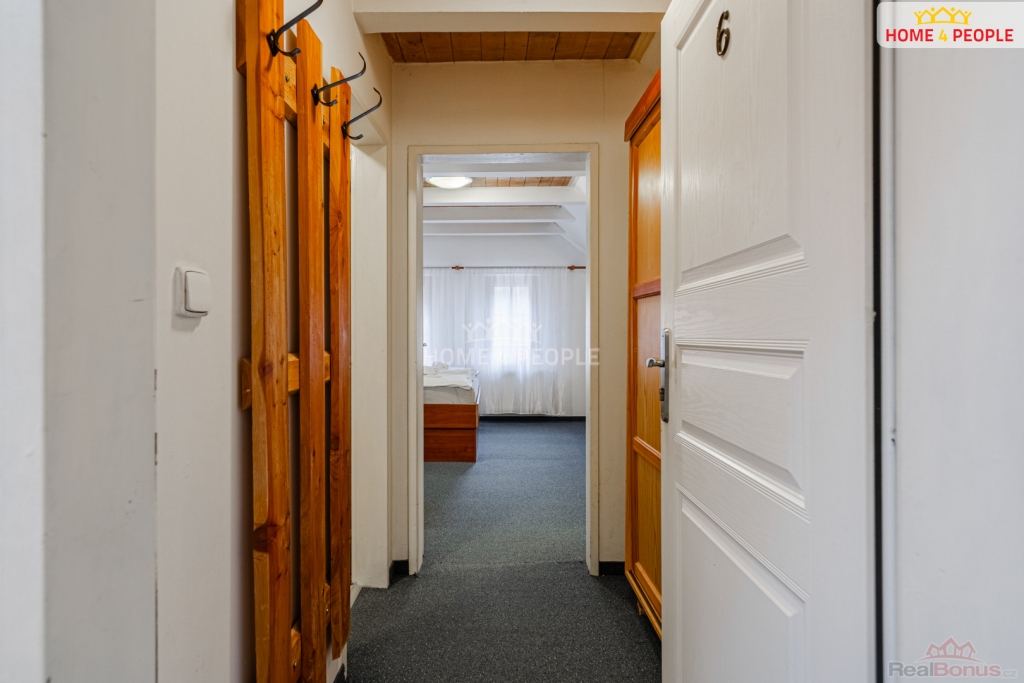 2. patro: 1× třílůžkový pokoj a 1× čtyřlůžkový apartmán se dvěma samostatnými ložnicemi