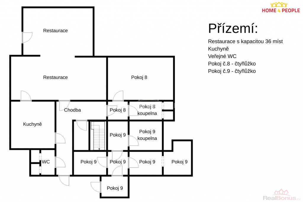 Kapacita: 36 míst k sezení v interiéru + 16 míst na venkovní terase