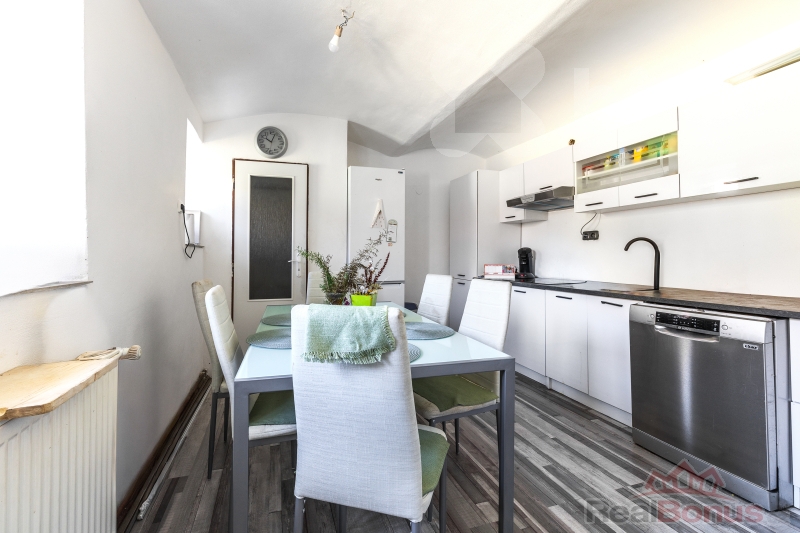 -- Přízemí: byt 3+1 (cca 90 m2) s prostornou koupelnou (rohová vana, sprchový kout, WC).