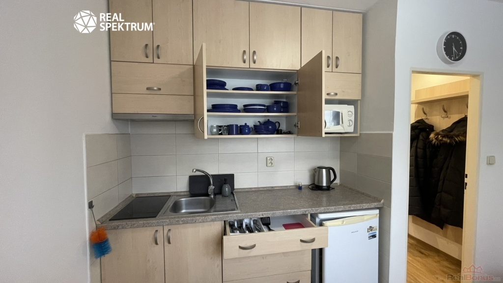 Byt je vybavený a připravený k okamžitému nastěhování. Dispozičně nabízí samostatnou kuchyni s kuchyňskou linkou, lednicí, mikrovlnnou troubou a samostatnou el. troubou, dále obytný pokoj s manželskou postelí a šatní skříní. Koupelna je po rekonstrukci, se sprchovým koutem a pračkou pro vaše využití.