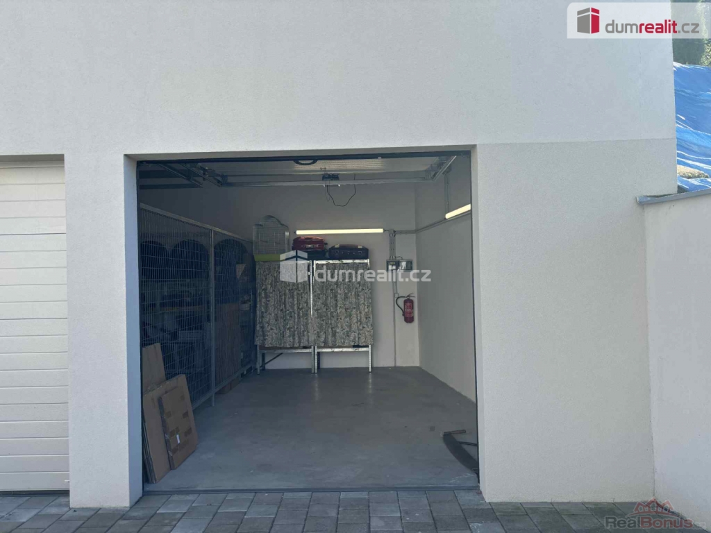 V garáži je elektrická zásuvka a odpočtový elektroměr.