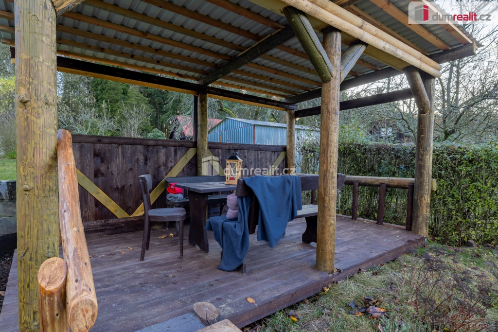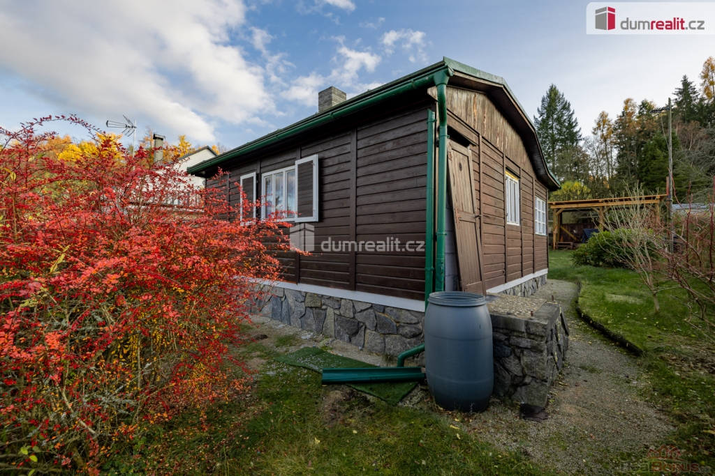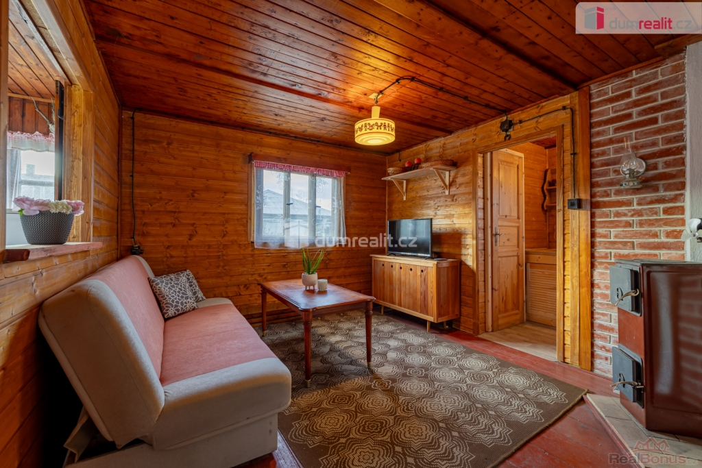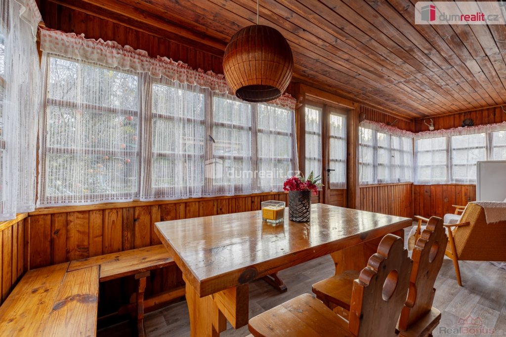 , prodej chaty o zastavěné ploše 47 m na Bucku, s pozemkem o celkové výměře 474 m. Na pozemku se nachází ještě zahradní domek na nářadí a pergola. Chata se skládá z prosklené verandy s jídelní částí, obývacího pokoje, jednoho neprůchozího pokoje, kuchyňky, koupelny se sprchovým koutem a wc, kde je i vstup do sklepa.