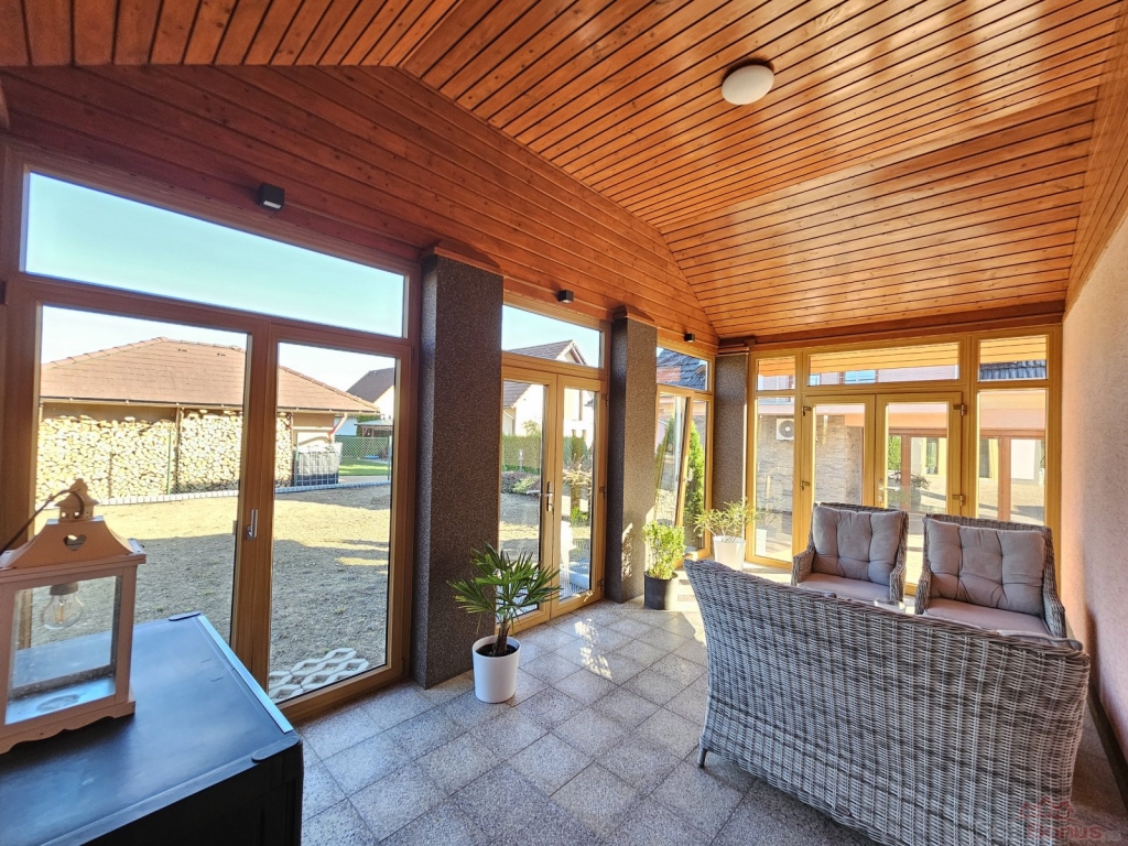 Vedle domu se nachází garáž s okouzlujícím vinným sklípkem s posezením a zasklená terasa pro relaxaci.