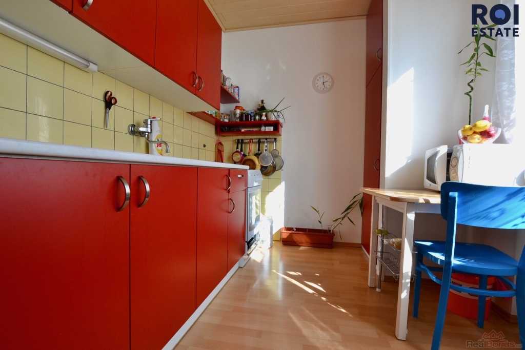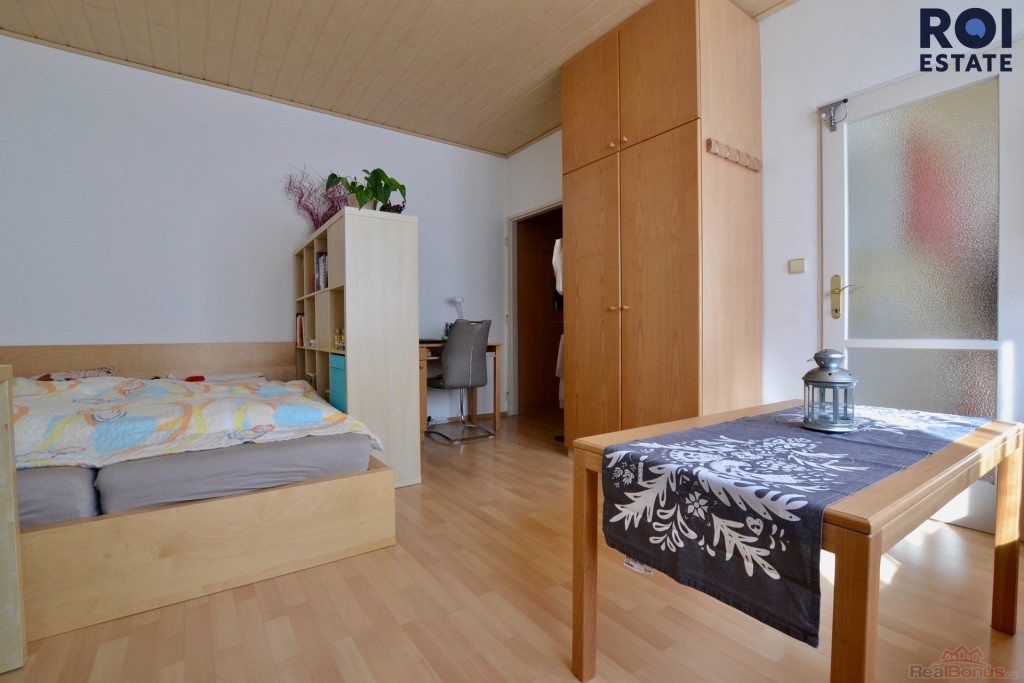 Hlavní pokoj působí vzdušně a světlě, vybavený je velkou šatní skříní a úložnými prostory. Postel si můžete vybrat podle vlastního vkusu a vytvořit si tak prostor přesně podle sebe. Kuchyně je samostatná a plně vybavená všemi potřebnými spotřebiči ? k dispozici je trouba se sporákem, lednice, myčka i pračka. Moderní koupelna s vanou a oddělenou toaletou přidává bytu na komfortu.