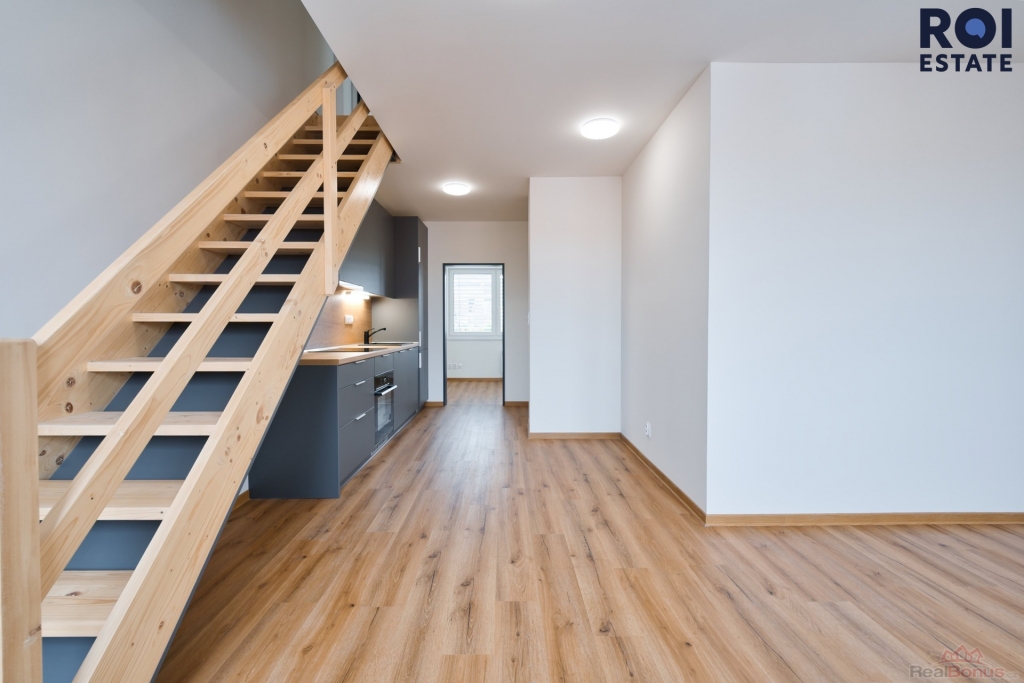 Právě zde nabízíme velmi citlivě zrekonstruovaný mezonetový byt 4?+?kk (cca 100?m2) ve 3. patře bez výtahu.
