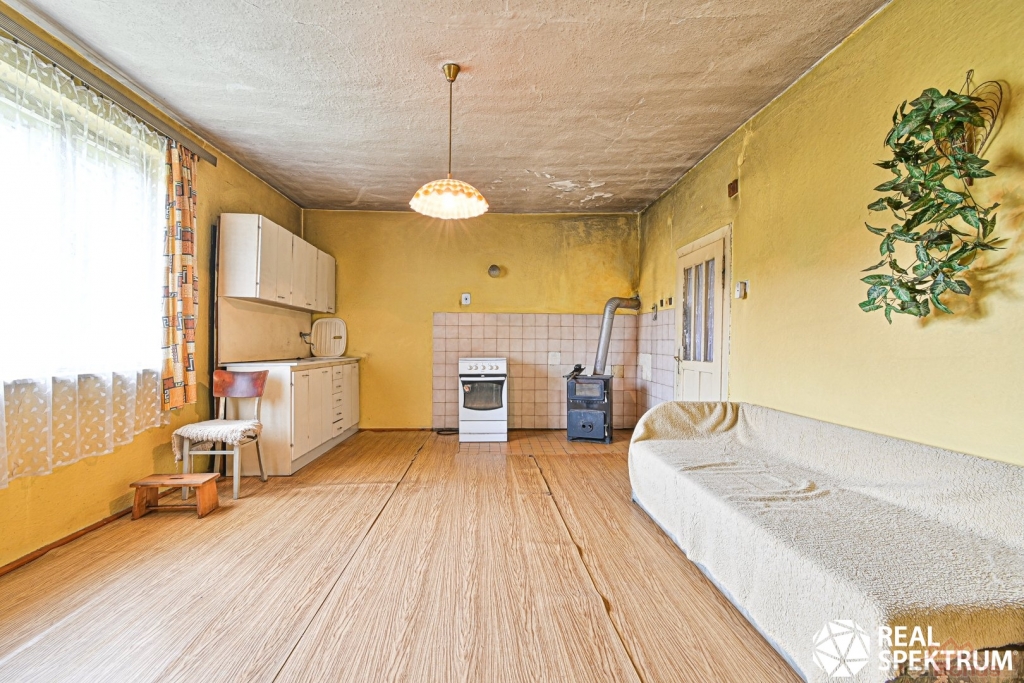 Pak Vám tato nemovitost umožní provádět opravy a údržbu (je dost potřeba). Obytným základem je totiž 2+kk bez soc. zařízení, ale s mnoha hospodářskými prostorami.
