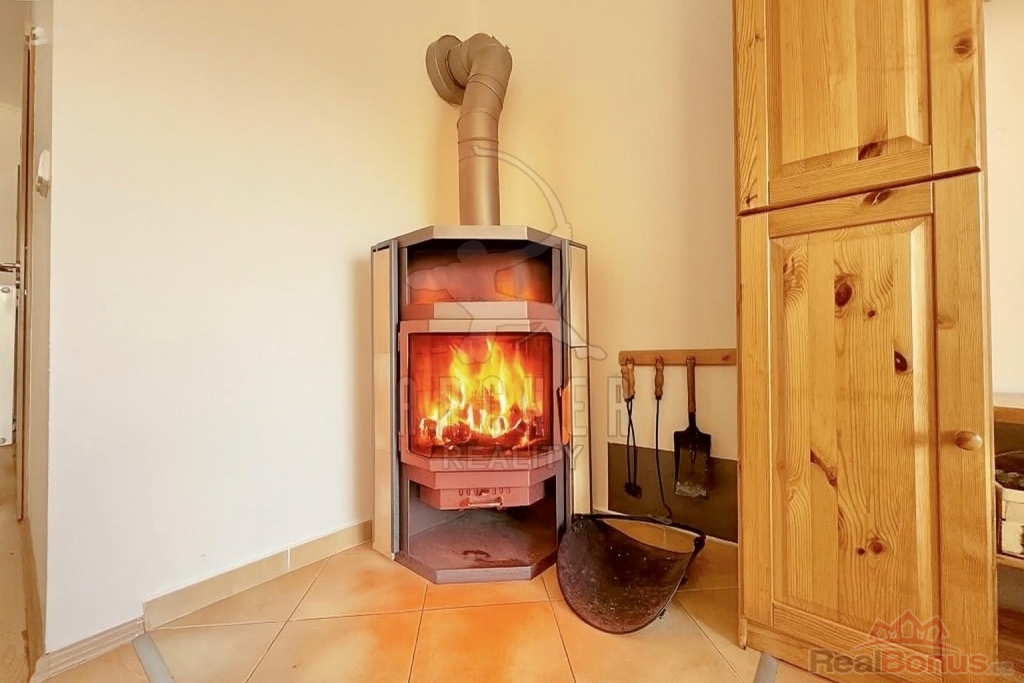 V prvním patře se rozprostírá prostorný obývací pokoj, propojený s designovým kuchyňským koutem. Z obýváku vedou francouzské dveře na velkou slunnou terasu. Ta nabízí příjemné soukromí i otevřený výhled na okolní střechy. Na stejném podlaží je také koupelna se sprchovým koutem a toaletou. Pohodu v chladných dnech zpříjemňují krbová kamna.