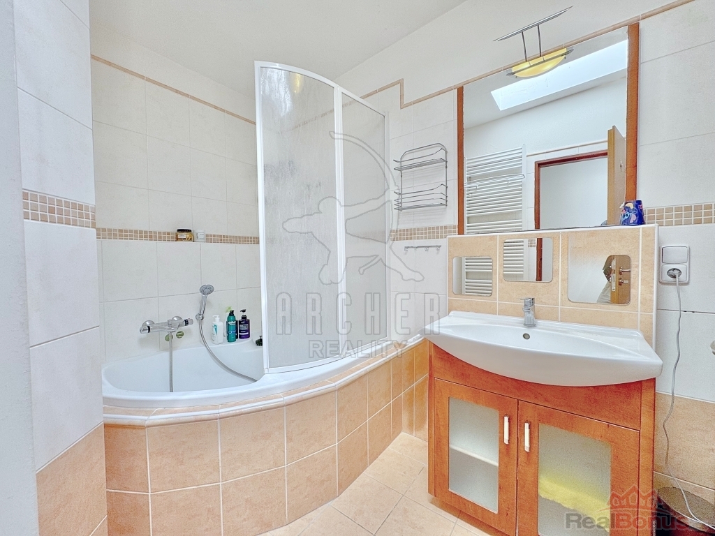 Ve druhém patře se nacházejí tři světlé ložnice, dvě orientované směrem k centru Nymburka a třetí do zeleně. Dále je zde druhá koupelna vybavená rohovou vanou a toaletou. Přímo naproti bytovému objektu leží park se vzrostlými stromy a keři, který dotváří klidné prostředí lokality.