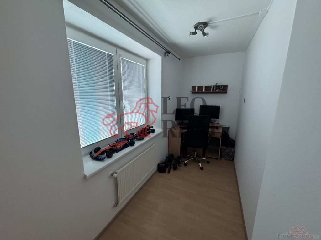 Byt je bez balkonu a bude předán kompletně vyklizený, zůstane pouze kuchyňská linka a vestavěné skříně. V současnosti je byt pronajat. Dispozice je velmi praktická vedle ložnice se nachází menší místnost s oknem, kterou lze využít jako úložný prostor, pracovnu nebo dětský pokoj. Pokud by novému majiteli tato úprava nevyhovovala, je možné místnost zvětšit na původní velikost, protože je předělena pouze sádrokartonovou příčkou.