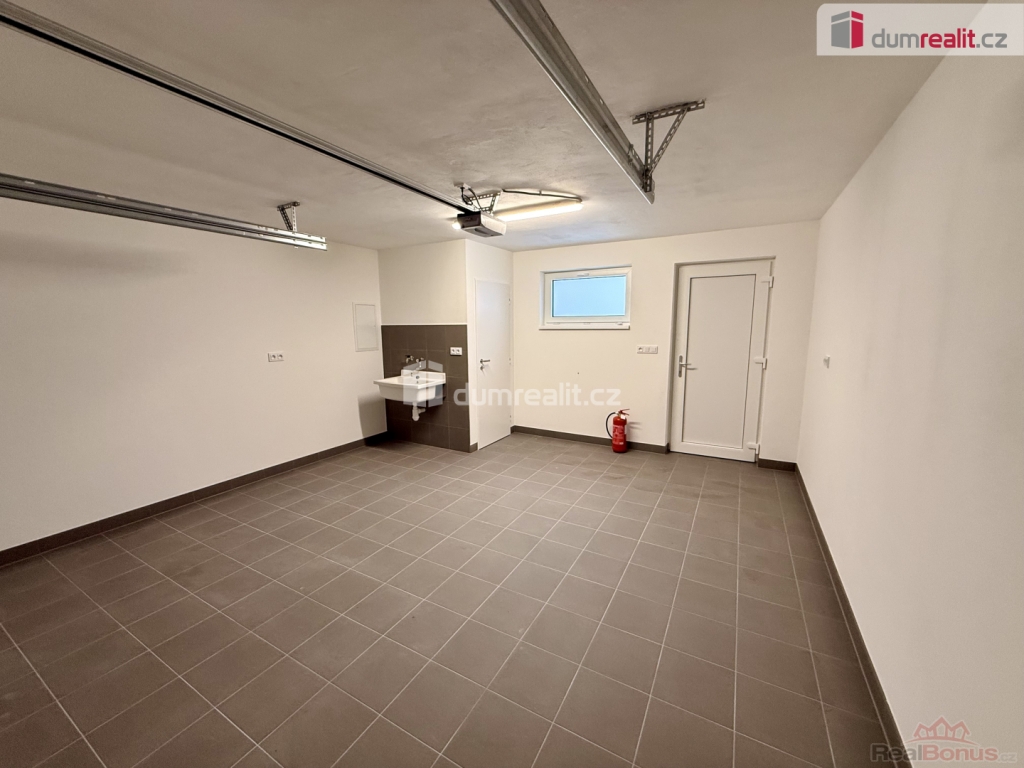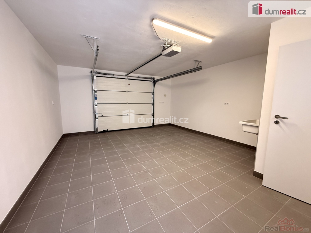 O tepelný komfort se stará elektrokotel s teplovodním podlahovým topením a elektrickým ohřevem vody, což přináší rovnoměrné vytápění a vysoký uživatelský komfort. Součástí domu je garáž pro jedno auto a další dvě parkovací místa se nachází přímo před domem, což ocení nejen rodina, ale i návštěvy. Nemovitost je nabízena k pronájmu bez možnosti chovu domácích zvířat v domě.
