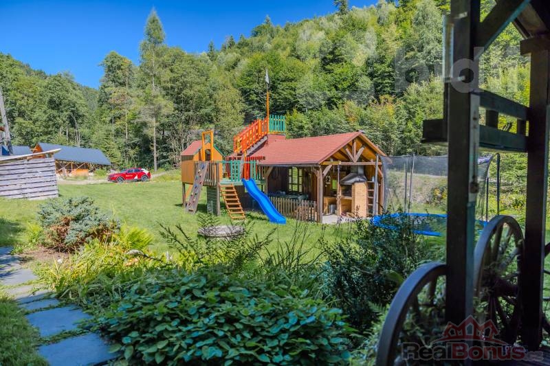 Celková užitná plocha pensionu činí 513 m2 s pozemkem 1681m2. V současnosti jsou k dispozici tři plně vybavené apartmány o dispozici 4+kk s kapacitou 18 lůžek, což novému majiteli umožňuje okamžitě apartmány nabízet ke krátkodobým pronájmům. Další dva apartmány lze vybudovat v podkroví a jeden v přízemí, což by novému majiteli značně rozšířilo investiční možnosti. Každý apartmán má vlastní kachlová kamna, další jsou ve společenské místnosti a chodbě. Alternativou pro vytápění je elektrický kotel, ohřev vody zajišťuje bojler, pitná voda je ze studny. Součástí vybavení je potom wellnes zóna obsahující saunu a ochlazovací bazének.