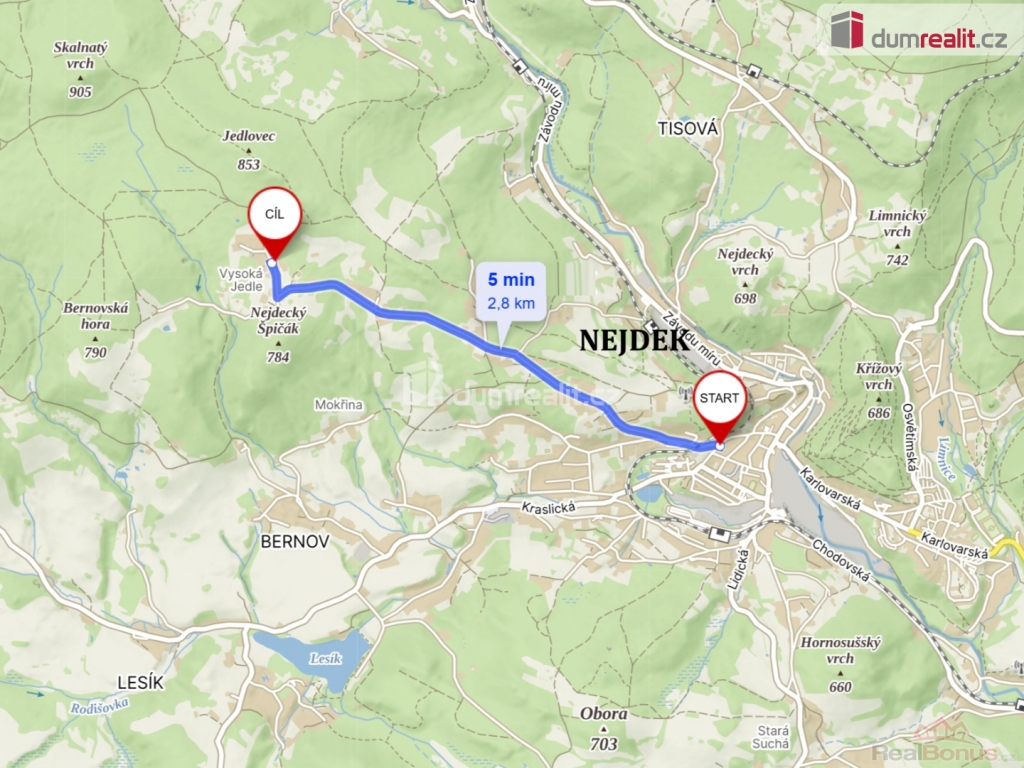 Dojezdová vzdálenost vzdálenost do Nejdku cca 5 min, do Karlových Varů cca 25 min. V blízkém okolí jsou lyžařské areály Pernink 11km, Plešivec 17km, Potůčky 21km a Boží Dar 24km. V Nejdku a Perninku začínají upravované běžecké trasy (Krušnohorská magistrála), v létě cyklotrasy.