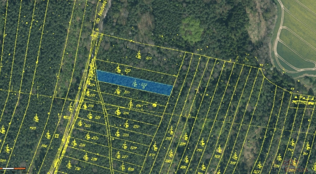 Na pozemku p.č. 212/2 o rozloze 2378 m je zásoba borovice 64 let věk 100 m - podle nového lesního zákona možno v roce 2026 vytěžit.