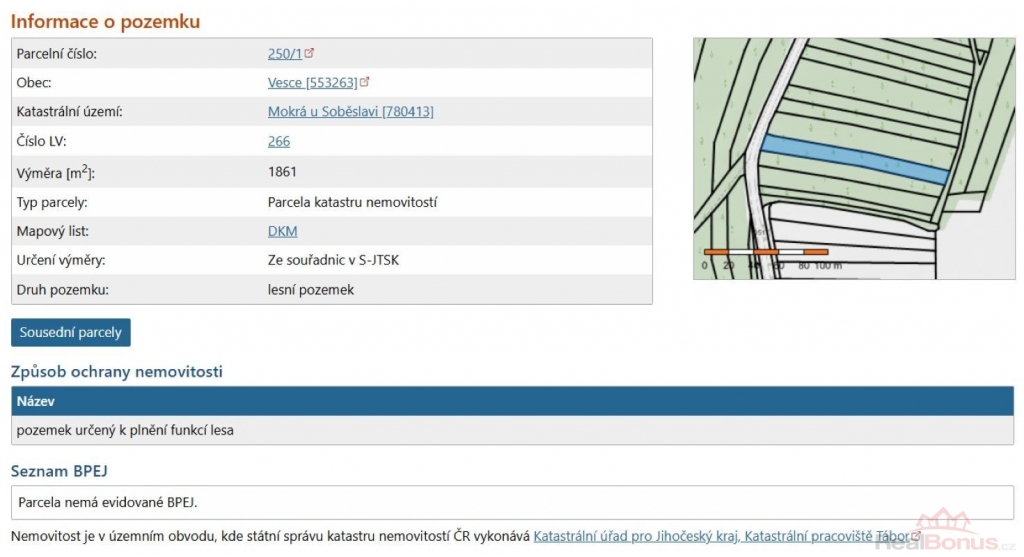 | Druh pozemku | les |