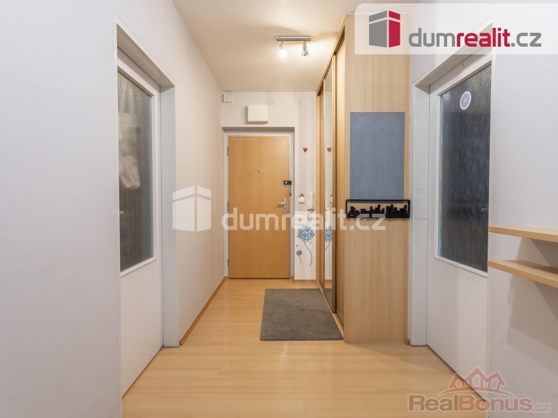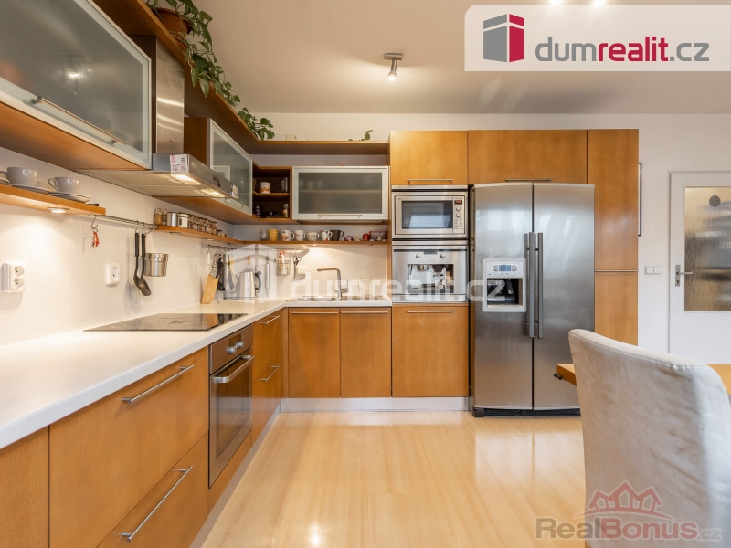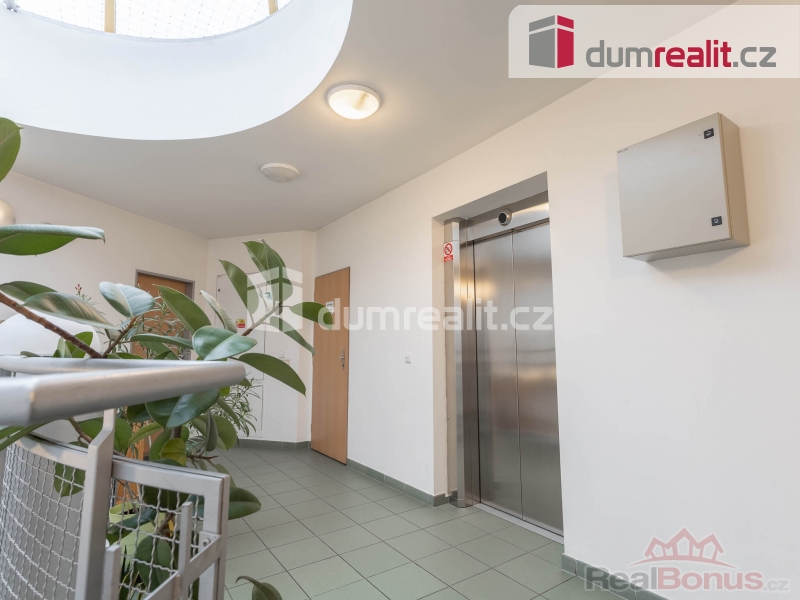 Byt disponuje užitnou plochou 62 m v nejvyšším 6. nadzemním podlaží. Do vašeho budoucího bytu se dostanete pohodlně bezbariérově velkým výtahem a to jak z ulice, tak rovnou z garážového stání, které je součástí prodeje. Před bytem na stropu chodby je umístěna poloprůhledná střešní kopule, která nejen osvětluje celý prostor a je i skvělým a neobvyklým doplňkem interiéru domu. Vedle bytu na patře je umístěna velká sušárna prádla. Po vstupu do bytu Vás čeká větší chodba s vestavěnou skříní. Z chodby jsou samostatné vstupy do velkého obývacího pokoje s kuchyní a do ložnice. Oba prostory mají střešní okna a tedy poskytují větší soukromí a samozřejmě více přirozeného světla. Z chodby se dále vstupuje dvěma vchody do samostatného WC a do koupelny, ve které je nejen větší vana, ale která je zejména osvětlená střešním oknem, které slouží i k rychlému větrání. Kuchyň je nejen velká a vkusná, ale zejména je ve výborném stavu. Její hlavní dominantou je americká lednice. Podlahy v bytě jsou plovoucí, jen WC a koupelna jsou provedeny v kombinaci dlažby a obkladů. Velkou výhodou pro budoucího majitele bytu je možnost instalace venkovní klimatizační jednotky. Další výhodou je možnost zanechat kompletní vybavení bytu budoucímu majiteli