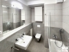 - Koupelna: Vana se skleněnou zástěnou, závěsné WC, úložné prostory.