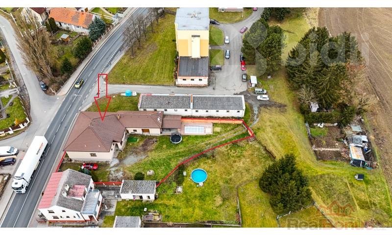 Na pozemek lze vjet z hlavní silnice i zezadu.