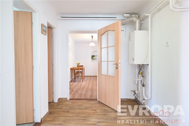 Dispozice: veranda, chodba, 3 pokoje, kuchyně, koupelna se sprchovým koutem, samostatné WC. V patře možnost využití terasy se vstupem ze dvora.