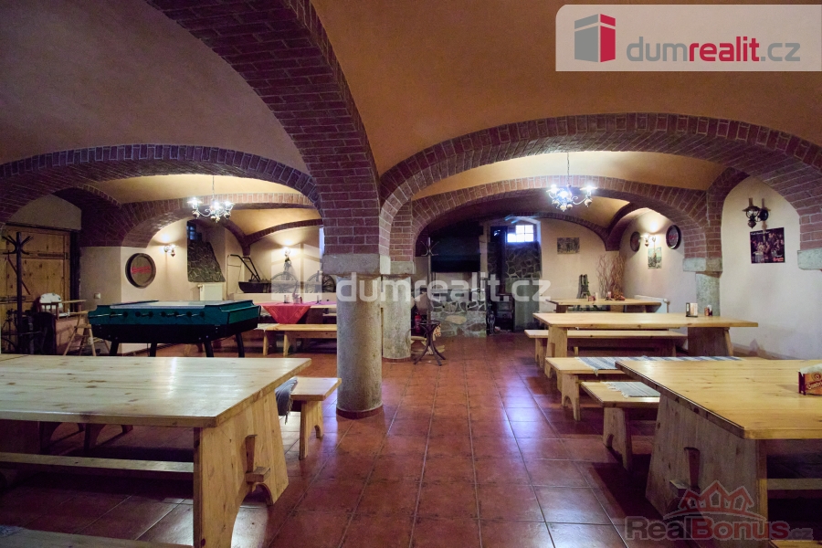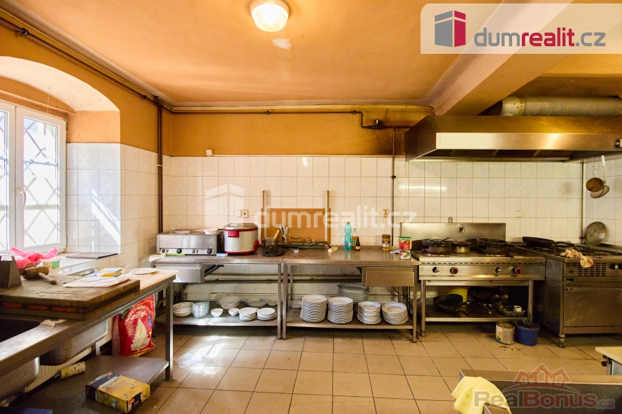 Cena vč. právních služeb a provize RK, Dumrealit.cz Vám zprostředkuje prodej rodinného domu ve Stráži nad Ohří nedaleko Ostrova u Karlových Varů s možností využití jako komerční objekt. Jedná se o rodinný dům s restaurací, kavárnou, barem, prodejnou potravin a s vlastní zahradou a parkovištěm. Objekt má rozsáhlý pozemek o celkové rozloze 1.361 m. Budova je dvoupodlažní, kdy v přízemí se nachází: restaurace s krbem (60 míst), venkovní terasa (40 míst), bar, kavárna, WC, kuchyně s veškerým gastro vybavením, sklad a prodejna potravin. V 1. patře se nachází: koupelna vč. sprchového koutu, koupelna vč. vany, WC, 7 pokojů, velký sál (dříve kulturní akce, plesy atd.) a vstup na půdu. Půdní prostor je velice prostorný s možností vybudování bytových jednotek. Místy je půdní prostor dvoupodlažní. Dům má plastová okna, rozvody elektřiny, rozvody topení vč. radiátorů, omítky vč. štuků, dlažby (chodby, schodiště, komerční prostory), plovoucí podlahy (místnosti) a interiérové dveře. Dům je z 1/2 podsklepený. Vytápění domu je zajištěno plynovým kotlem a ohřev vody je zajištěn elektrickým bojlerem. U domu je garáž a celý objekt vč. zahrady je oplocen. Součástí je vyasfaltované parkoviště 558 m. V nedávné době objekt sloužil jako zavedená restaurace vč. stálé klienteli, prodejna potravin, v letních měsících kemp pro vodáky a zázemí pro cyklisty. Objekt je vhodný k provozování restaurace, kavárny, baru, prodejny potravin nebo k vybudování penzionu nebo k přestavbě na bytové jednotky. Tuto nemovitost lze hradit hypotečním úvěrem, který Vám rádi pomůžeme vyřídit v našem hypotečním centru. Vzhledem k tomu, že před zadáním do inzerce nebyl vyhotoven PENB, je tento objekt v souladu s platným zákonem zařazen do energetické třídy G. Ev. číslo: 638941. Energetický štítek: G
