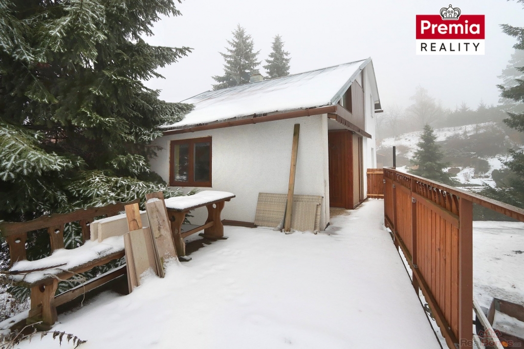Chata se nachází v mírném svahu na vlastním pozemku o výměře 700 m2. Nemovitost je dispozičně členěna do tří úrovní. V suterénu se nachází prostorná garáž a prostory k uskladnění věcí. V prvním nadzemním podlaží je chodba, koupelna, toaleta se sprchovým koutem a dominantou je otevřený obývací pokoj, ze kterého se schodištěm vychází do otevřeného ochozu se samostatnými vstupy do dvou ložnic.