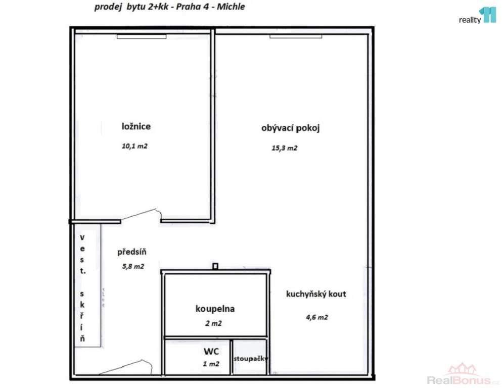 , REZERVACE! Prodáme lidný byt o velikosti 2+kk, 40m, v osobním vlastnictví, umístěný ve čtvrtém poschodí domu situovaného v panelové zástavbě z šedesátých let (1964) v Praze 4, v blízkosti stanice metra Budějovická. Okna bytu jsou orientována na jihovýchod. Jednotlivé budovy celkové zástavby jsou od sebe odděleny dostatečným prostorem zeleně se vzrostlými stromy. Byt je rozčleněn na obývací pokoj (15,28 m) s kuchyňským koutem (4,56 m), ložnici (10,09 m), předsíň (5,80 m), koupelnu (2,00 m) a WC (1 m). K bytu ještě náleží komora (1 m) umístěná na chodbě domu vedle vchodu do bytu. Byt je ve velmi dobrém stavu. Kuchyňský kout je zařízen novou kuchyňskou linkou, která je vybavena plynovou varnou deskou, zabudovanou troubou 2 v jenom (horkovzdušná kombinovaná s mikrowele) a myčkou. V koupelně je menší vana a umyvadlo se skříňkou, v předsíni třídílná vestavěná skříň. V bytě plovoucí podlaha, okna plastová, opatřená žaluziemi a vnějšími roletami na dálkové ovládání. V koupelně a na WC je dlažba a obklady. V současné době je byt vyklizený. Dům je zateplený-úsporná energetická náročnost budovy a dobře udržovaný-nová střecha, nové výtahy, nové vstupní dveře do domu s bezbariérovým přístupem. K dispozici je kočárkárna. Současná výše měsíčních poplatků činí 3.124,- Kč, poplatky za plyn a elektřinu pro jednu osobu činí cca 1.000,- Kč za měsíc. Jedná se o atraktivní lokalitu umístěnou v širším centru, přesto v klidné části, s výbornou dostupností MHD, spojením do centra (metro, BUS) i výjezdy z Prahy všemi směry, plná občanská vybavenost. Parkování je v ulicích v okolí domů. Ev. číslo: 27959. Energetický štítek: C (106 kWh/m2/rok).