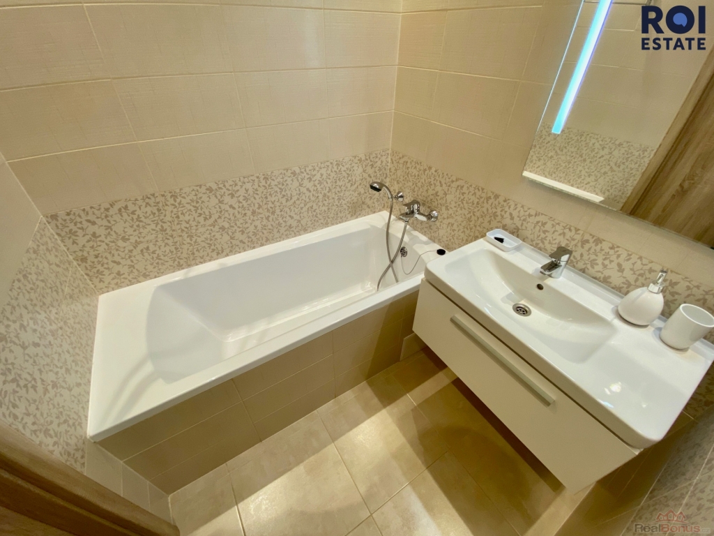 Další místností, která vás přivítá, je koupelna ? vaše malá oáza klidu. Najdete v ní prostornou vanu, ideální pro dlouhé relaxační koupele po náročném dni.