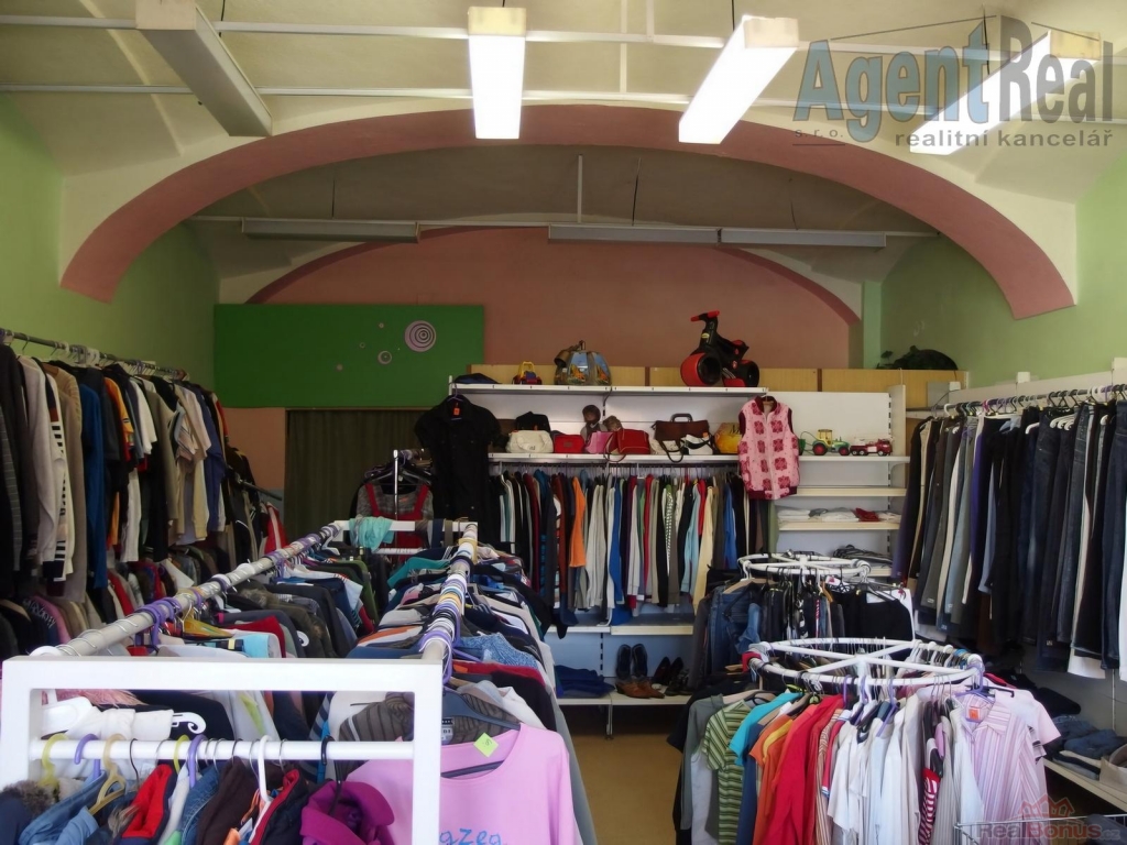 V 1. NP budovy vlevo se nachází prodejna s textilem a drogerií, plocha prodejny včetně zázemí je 94 m2.